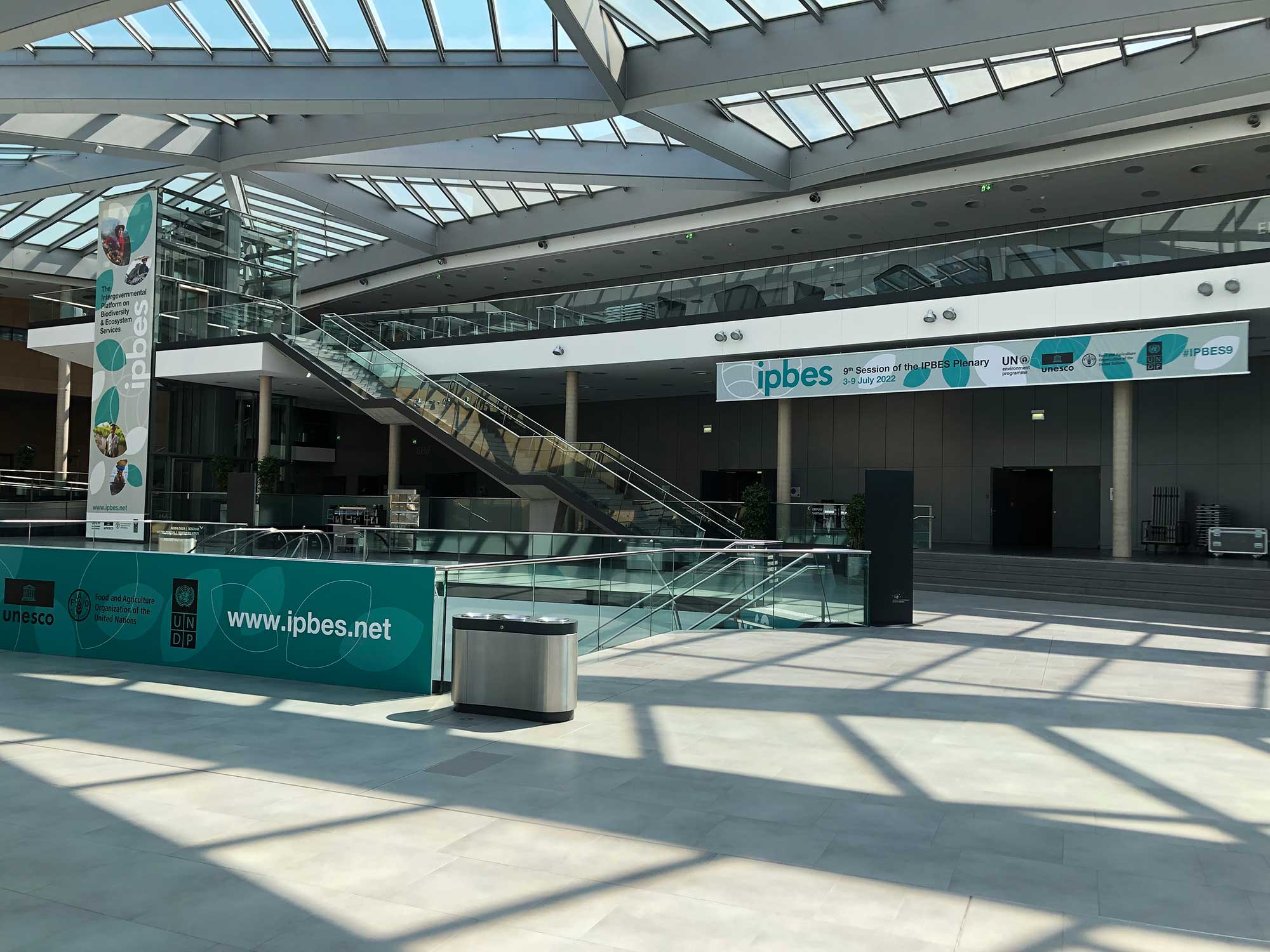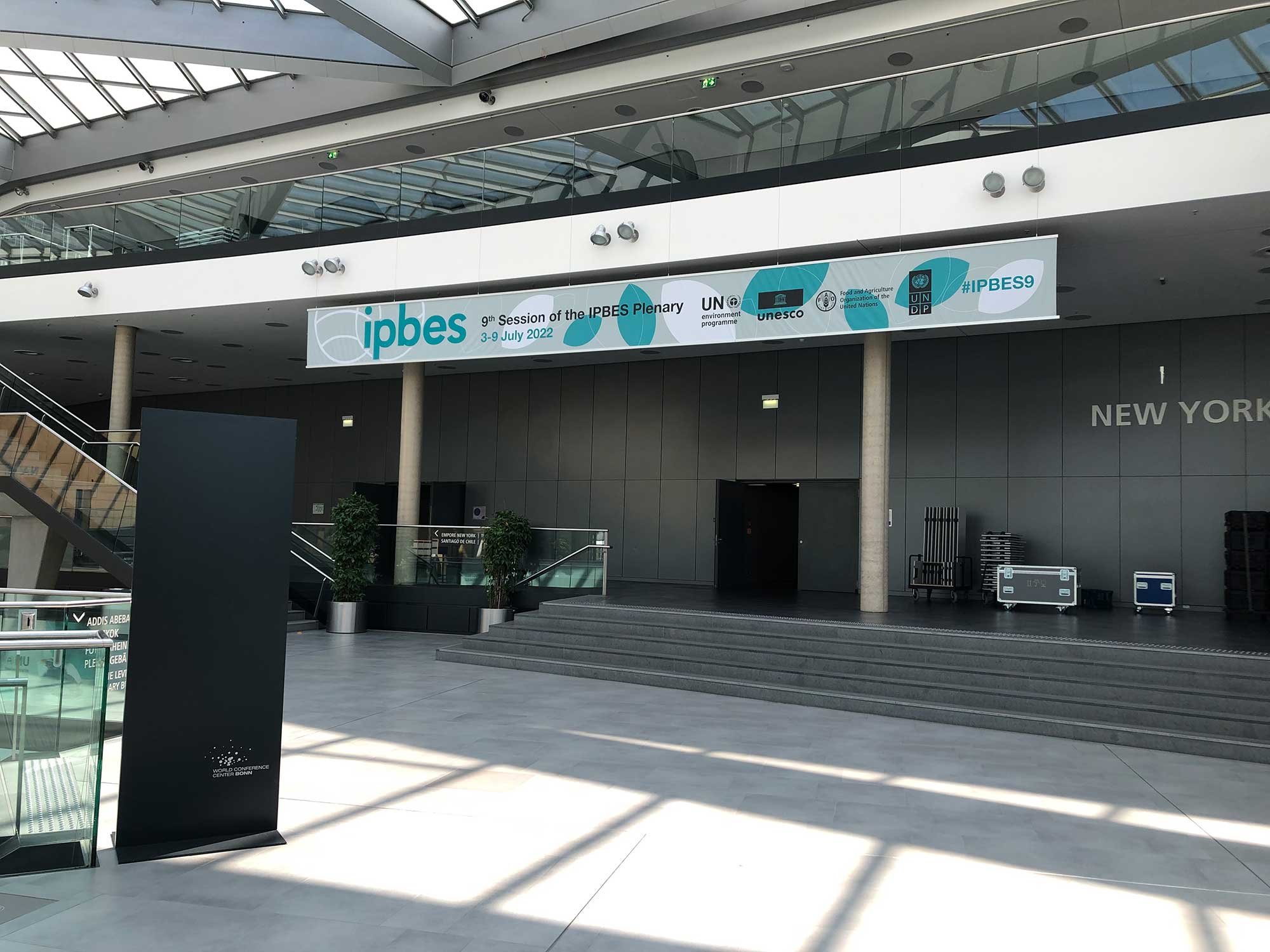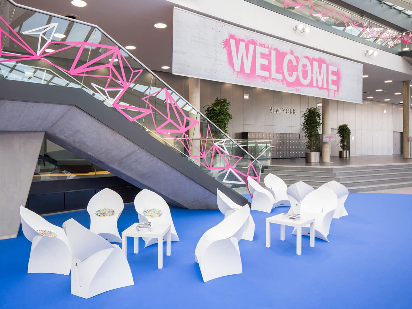Das magentafarbene Banner auf den Bildern hat ein Maß von: 13.000 x 2.000 mm