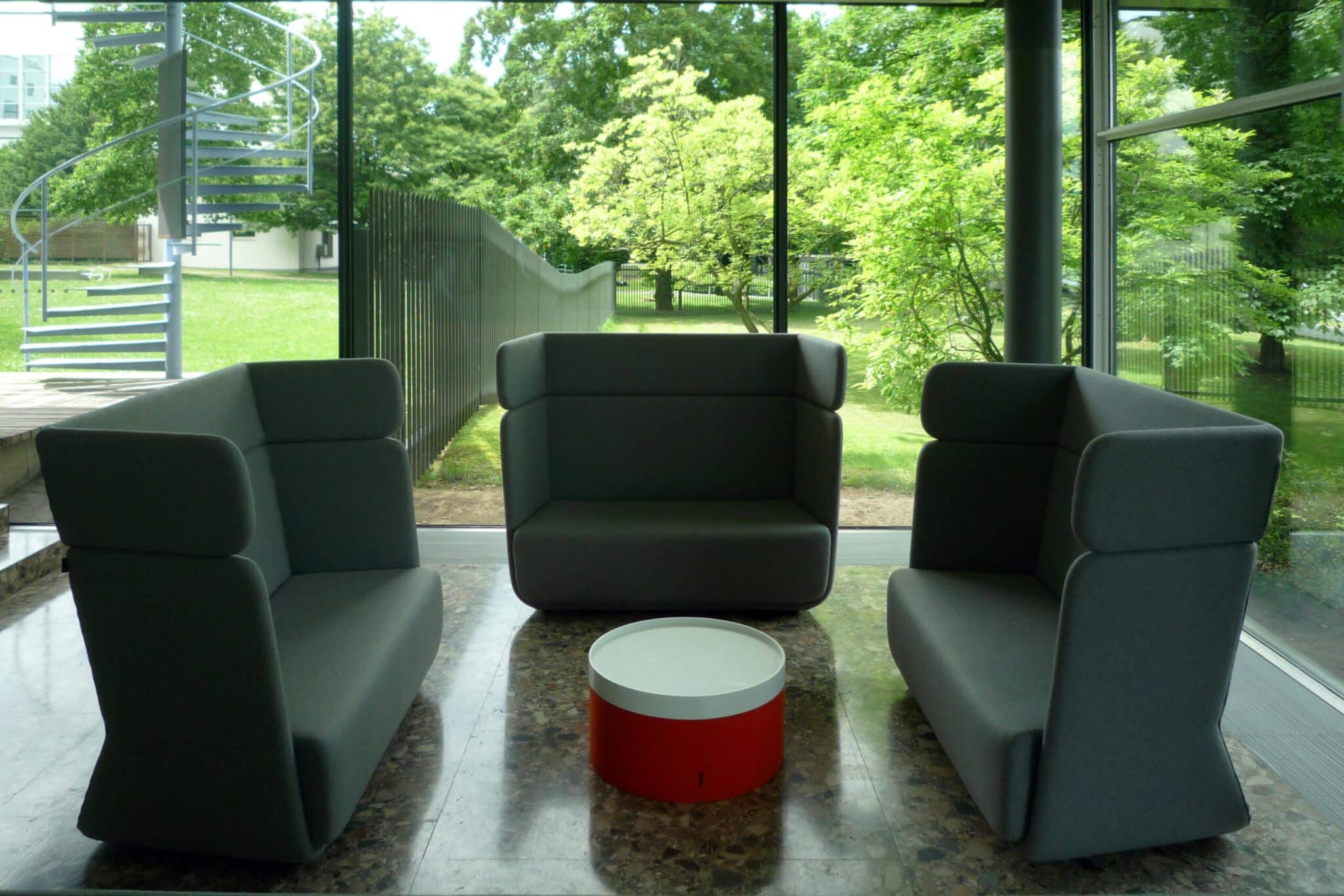 Teppiche und Bodenbeläge bilden nicht nur den unteren Rahmen einer Fläche, sondern grenzen auch ab. Nutzen Sie farbige Flächen passend zu Ihrem Corporate Design