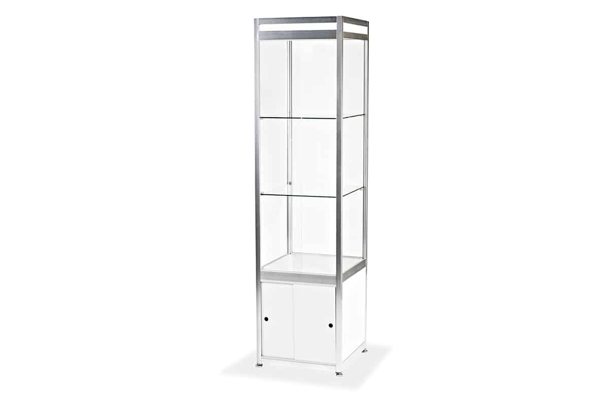 Säulenvitrine mit Unterschrank, beleuchtet